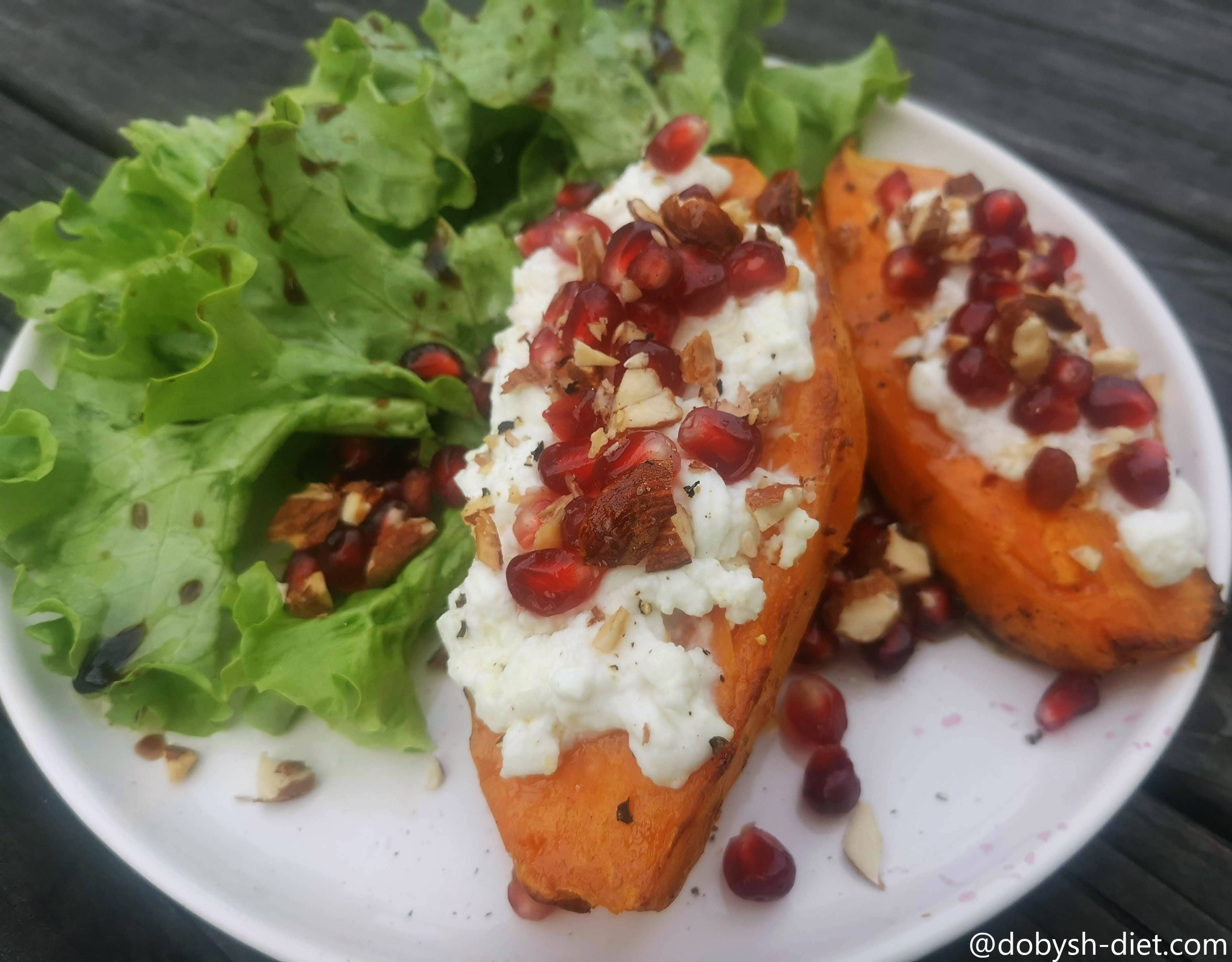 4. Après la cuisson, saupoudrez vos patates douces de quelques graines de grenade et d'amandes concassées.